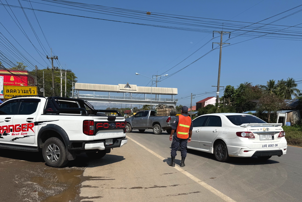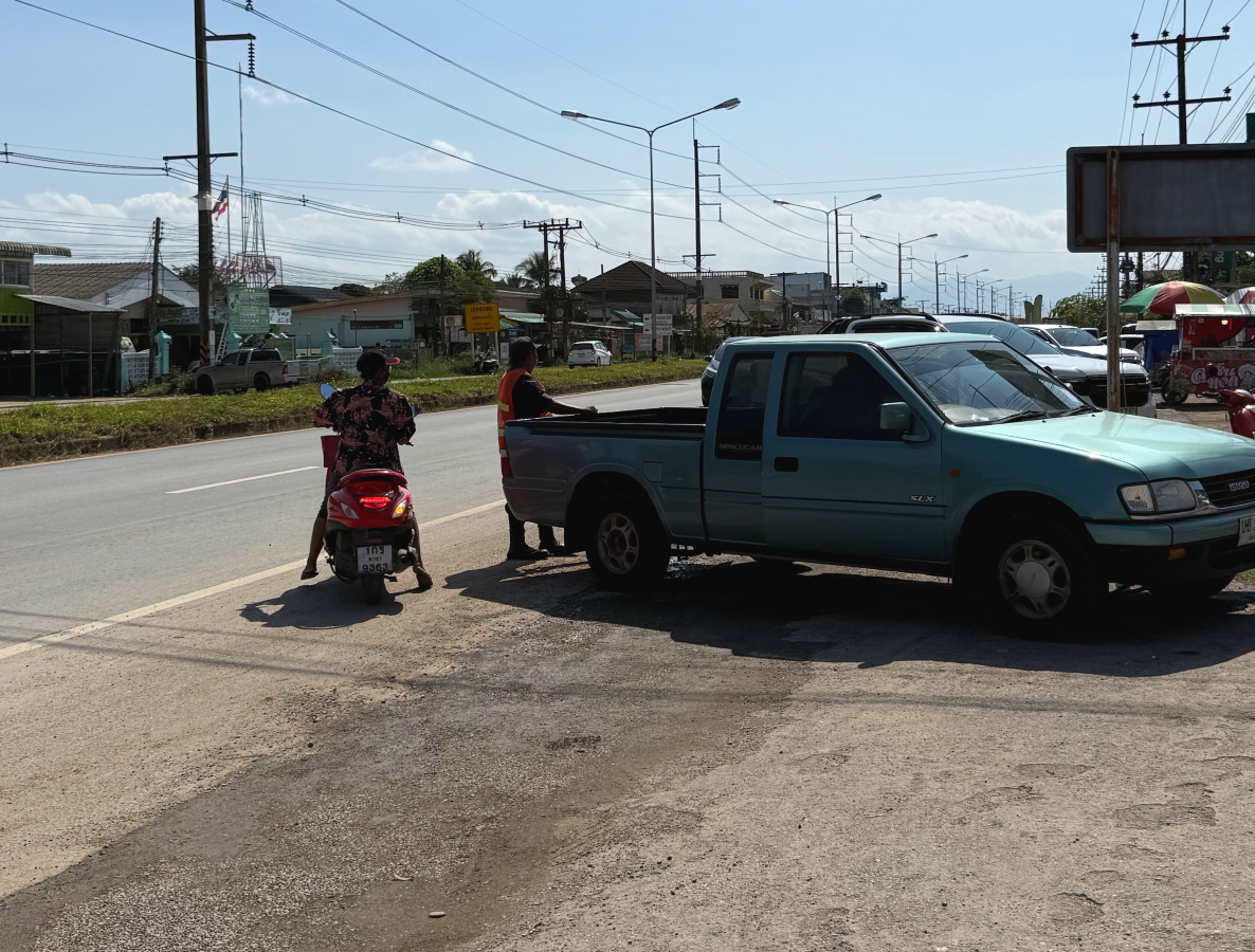 2台続けて国道にバックで侵入するところをサポートするお巡りさん