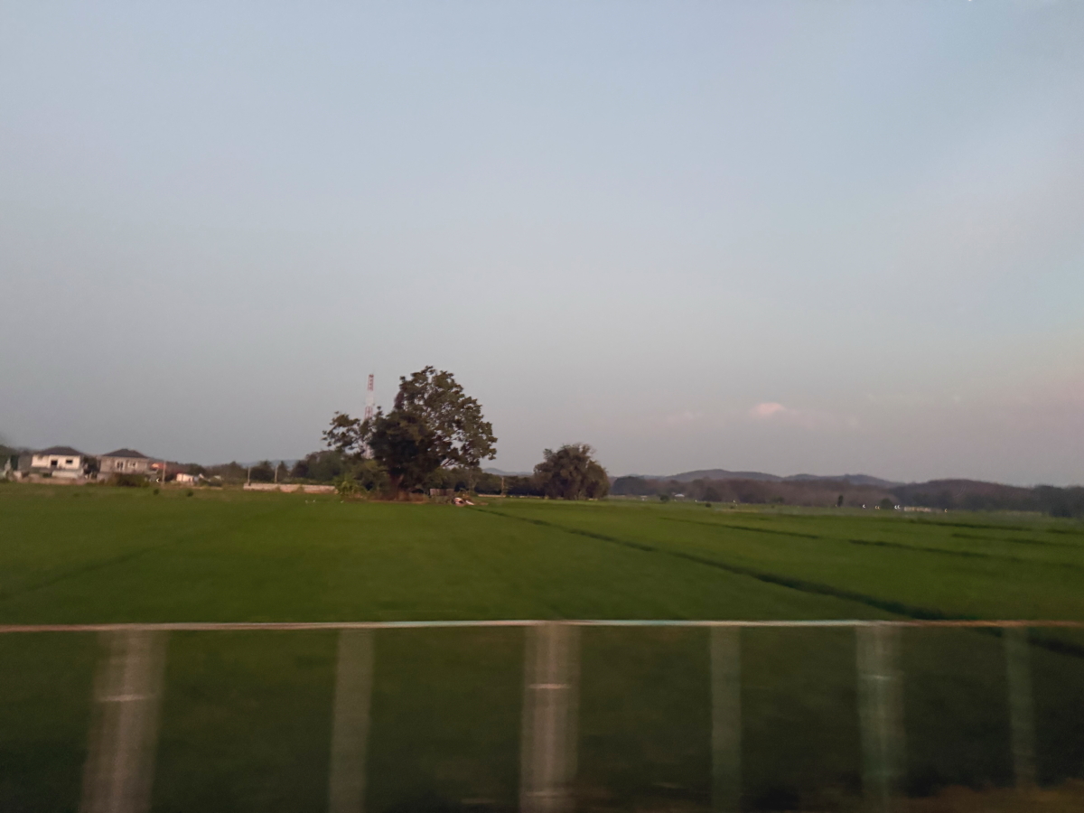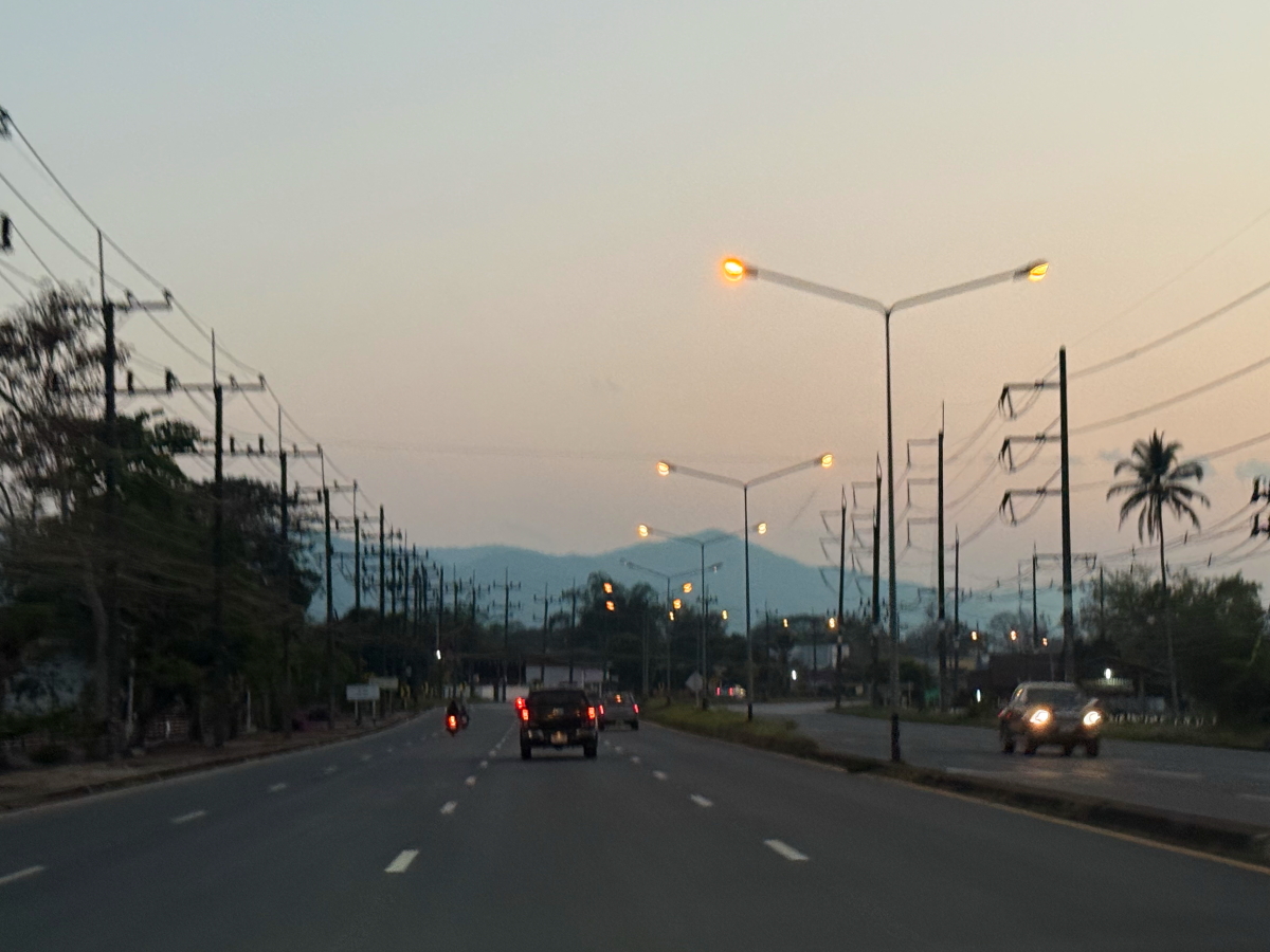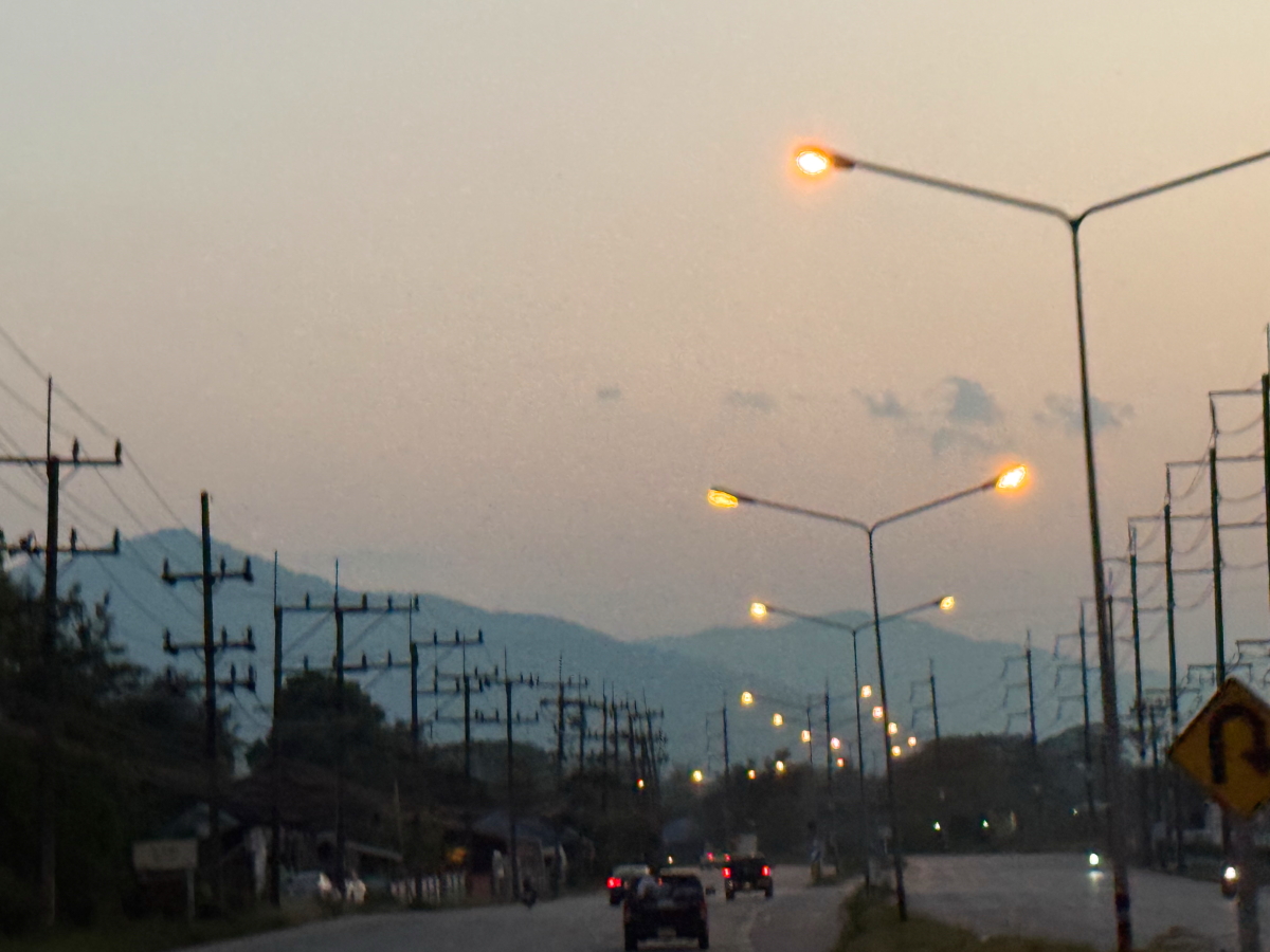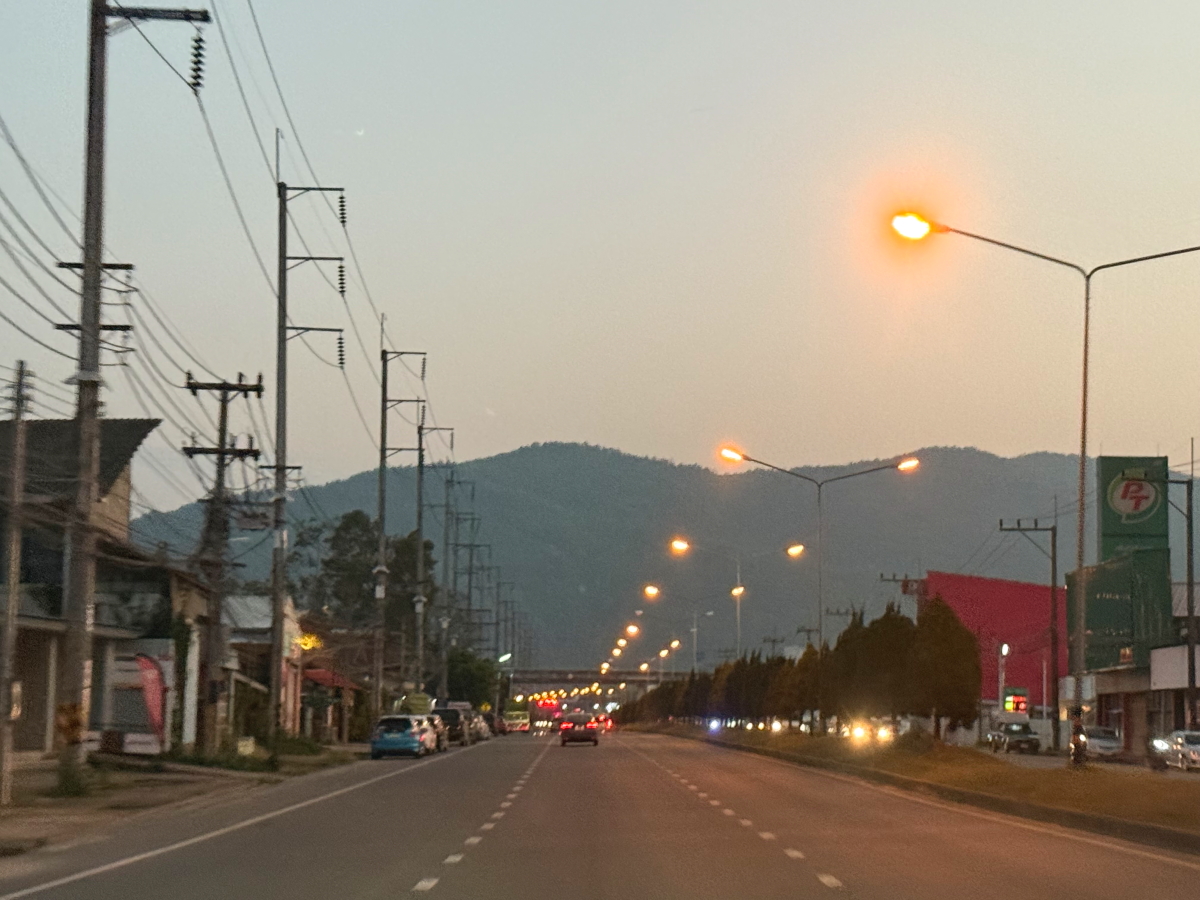 メーチャン郊外の山々も夕暮れバックになりました