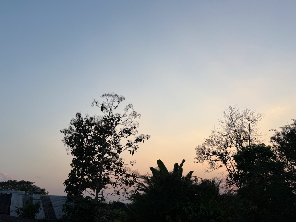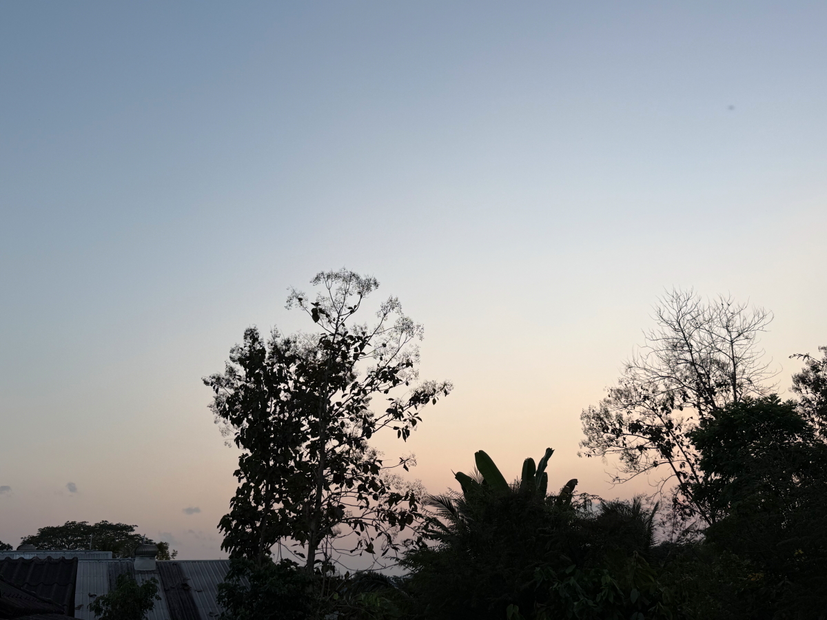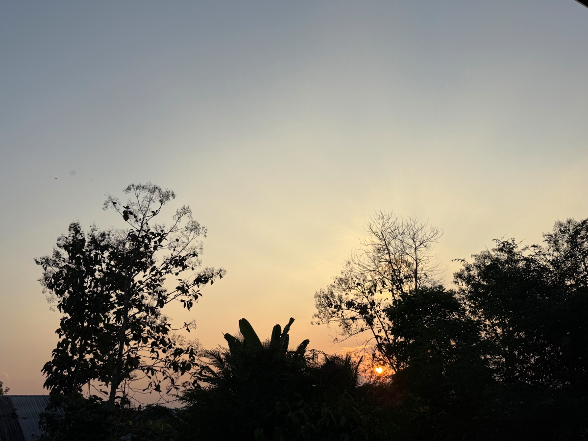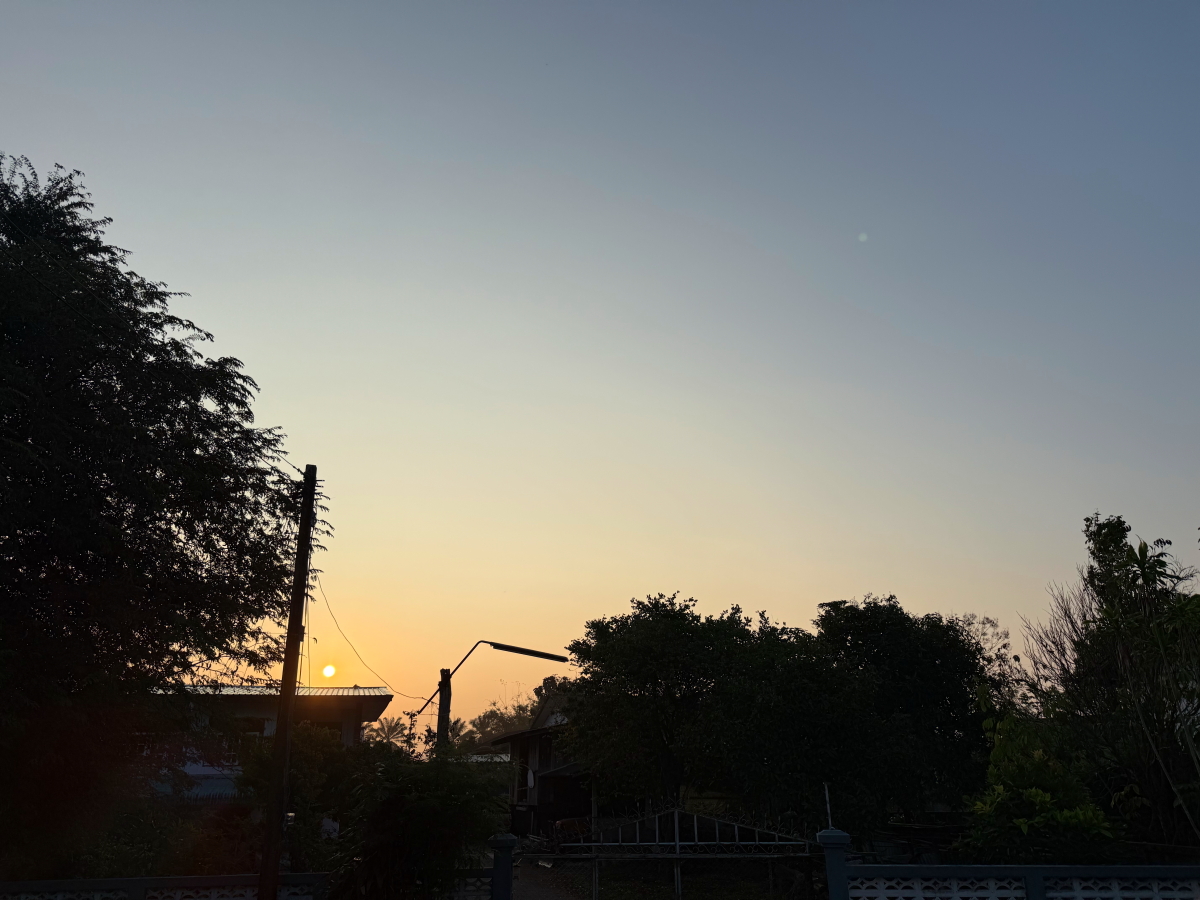メーチャン郊外の山々も夕暮れバックになりました