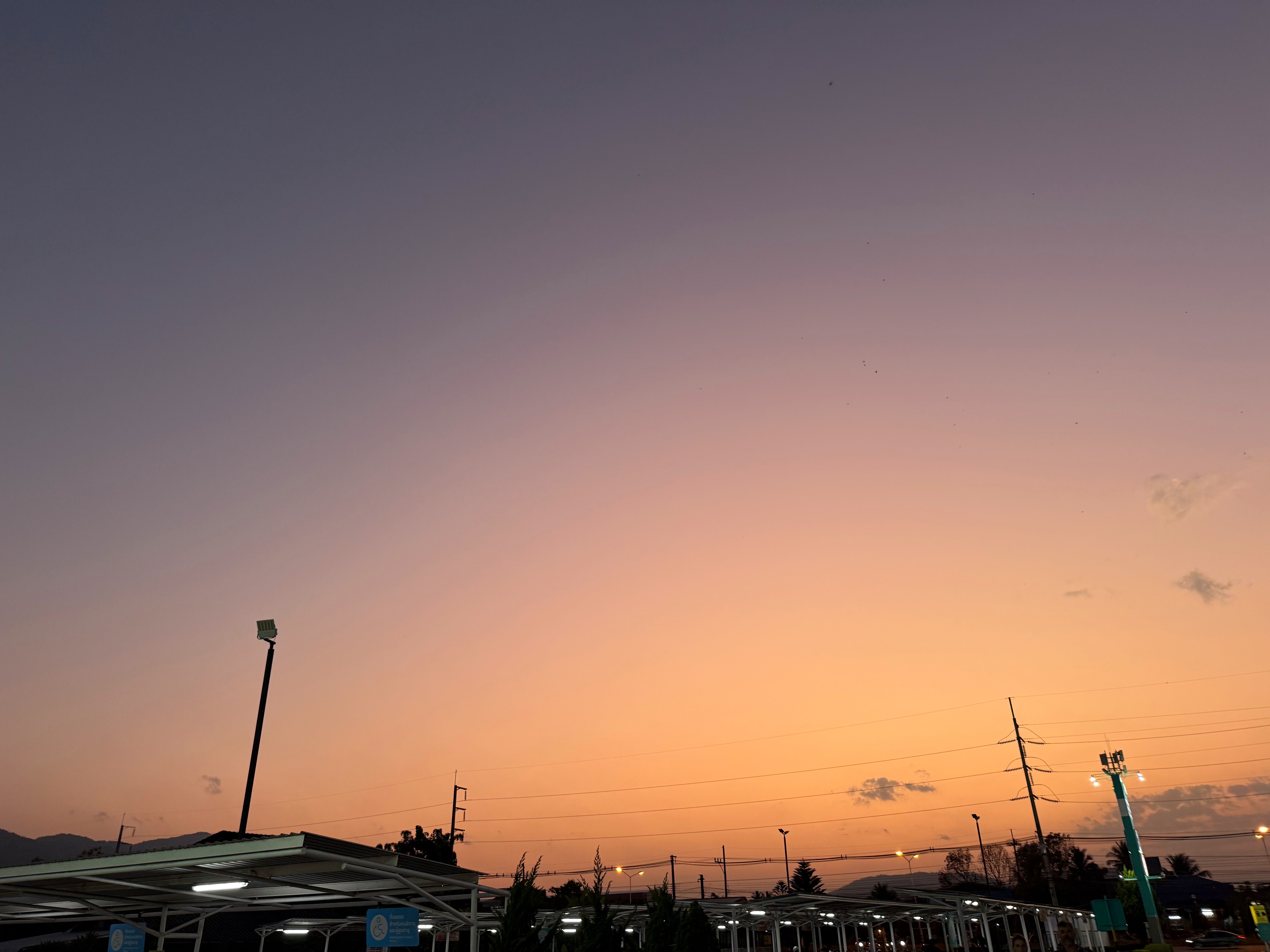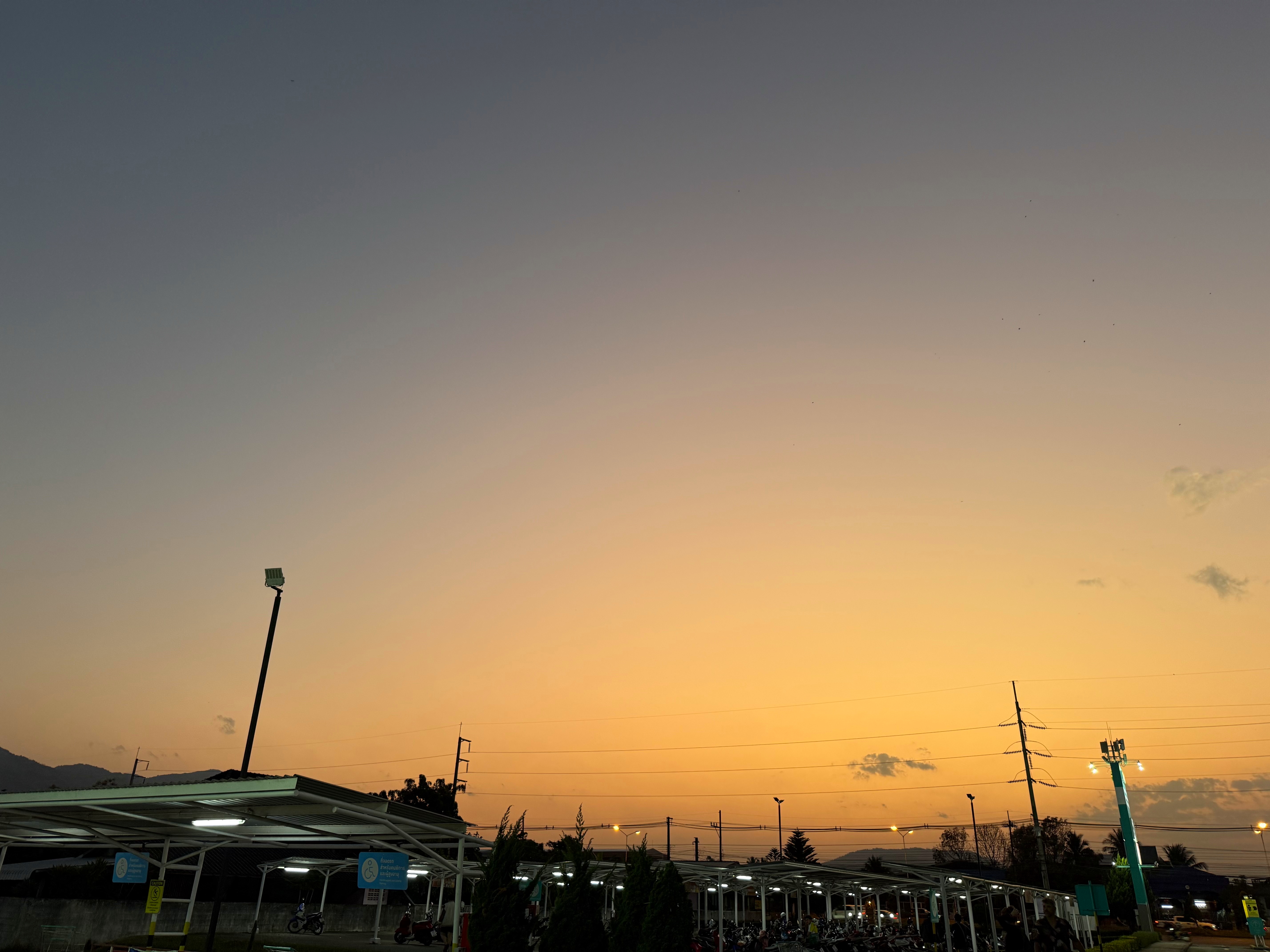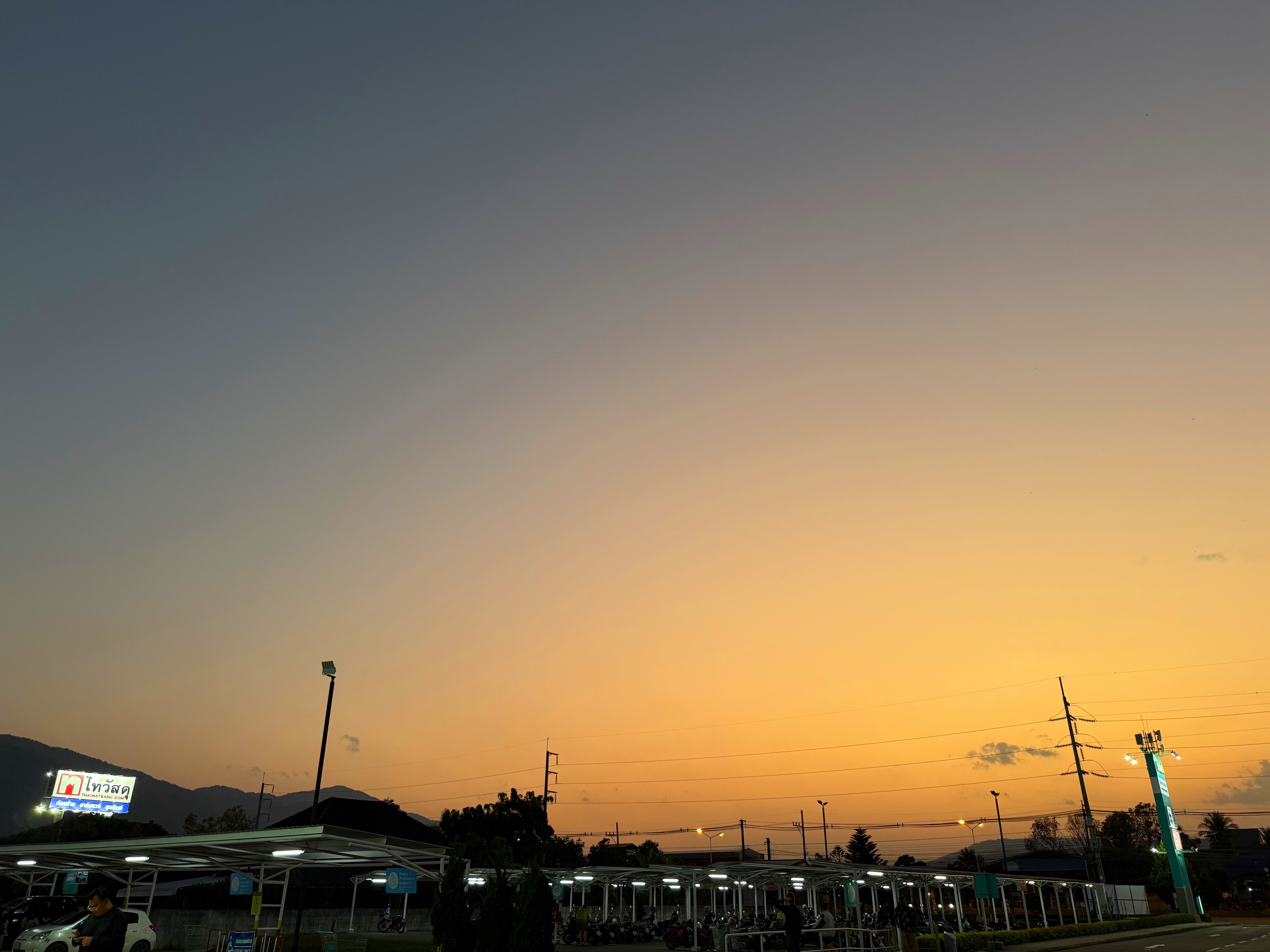 スーパー駐車場の夕暮れグラデーションが見事でした