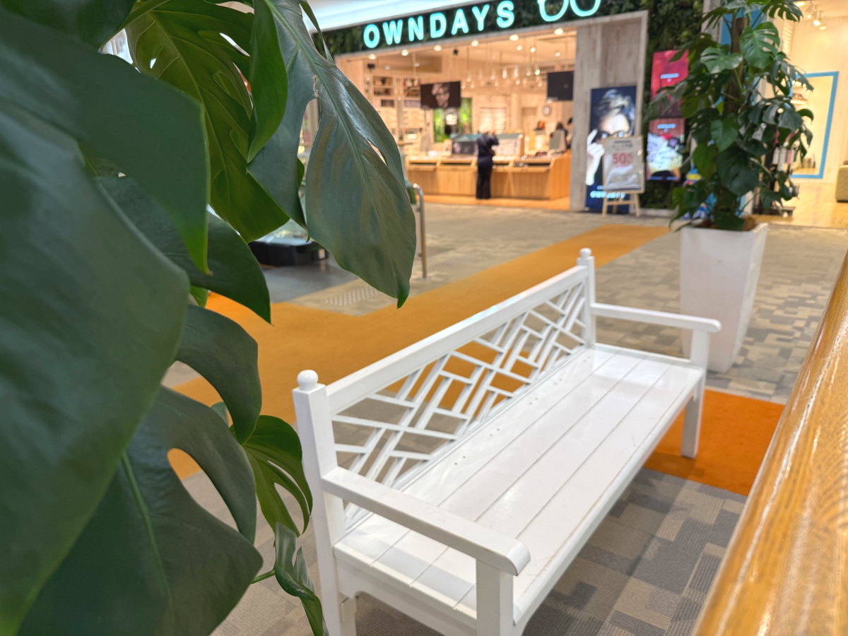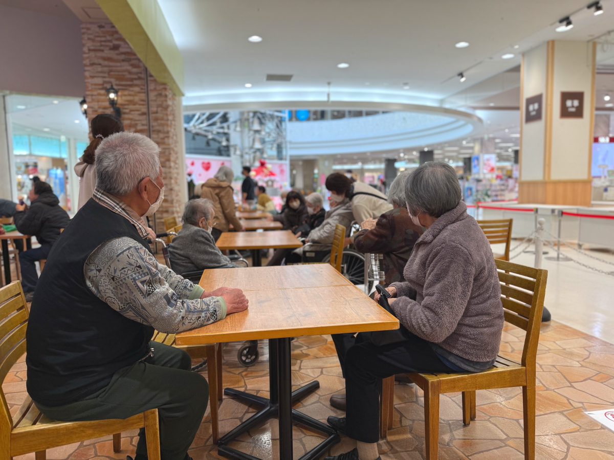 食後はベルモールのフードコート、老人会のお隣でまったり〜