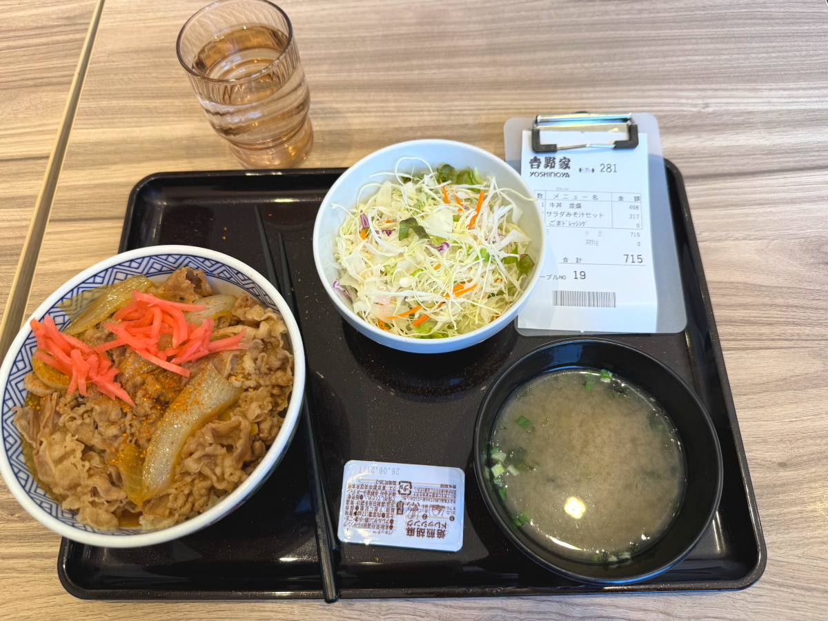 11,Mar,2026 翌日も日本の味「牛丼」、タッチパネルの注文にも慣れました
