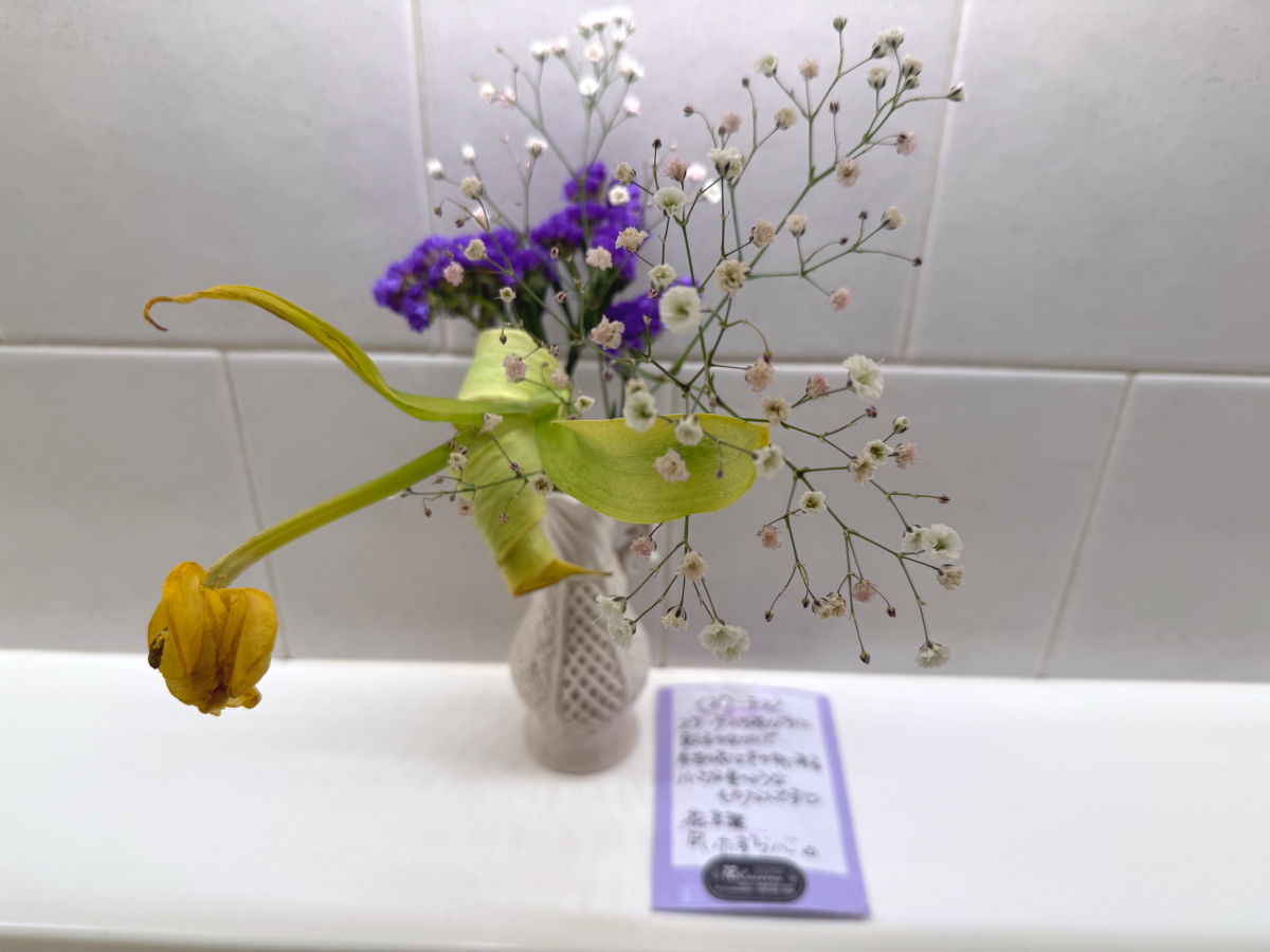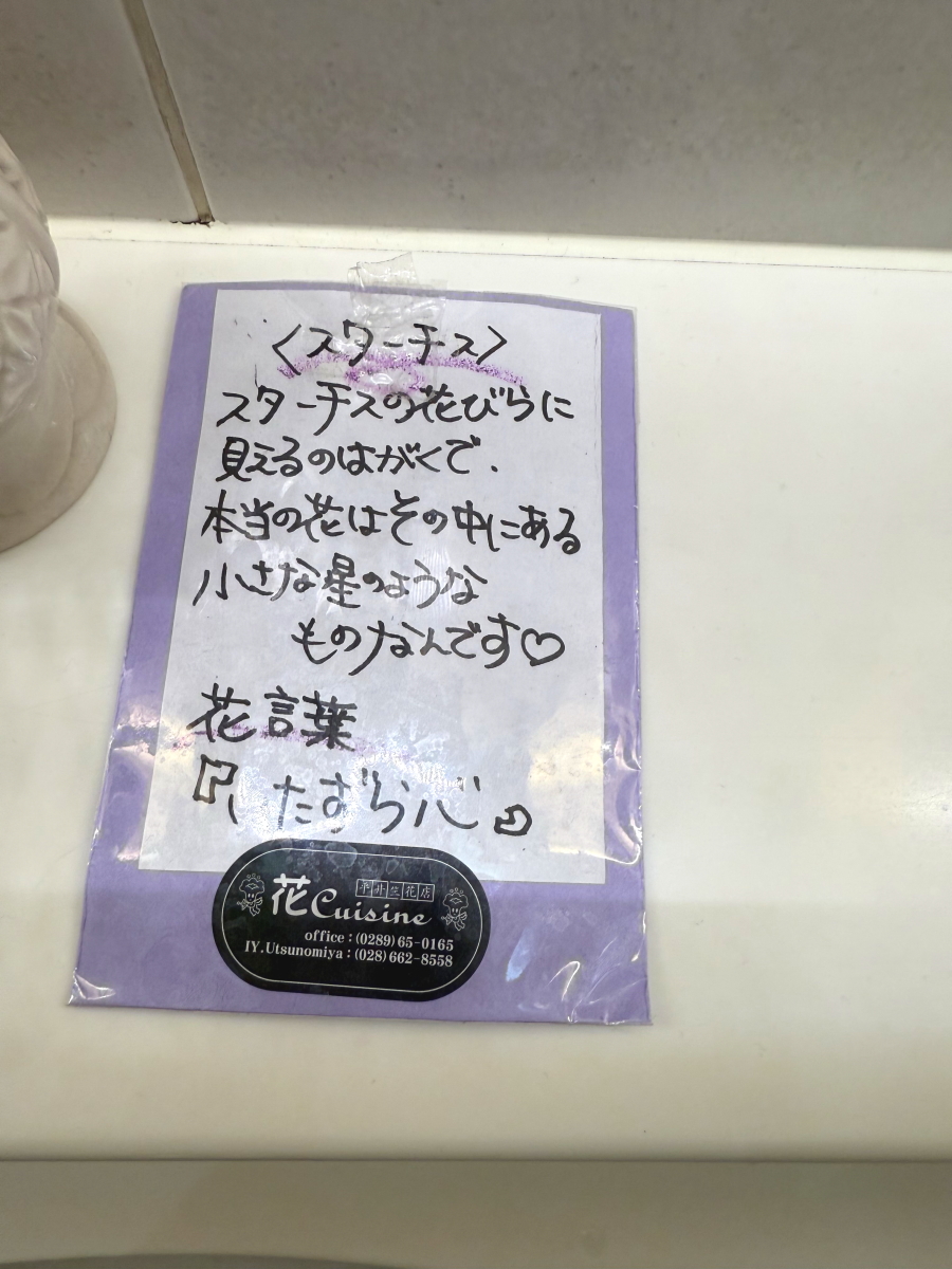 お花の横にメモ、これも日本が世界に誇れる状況!