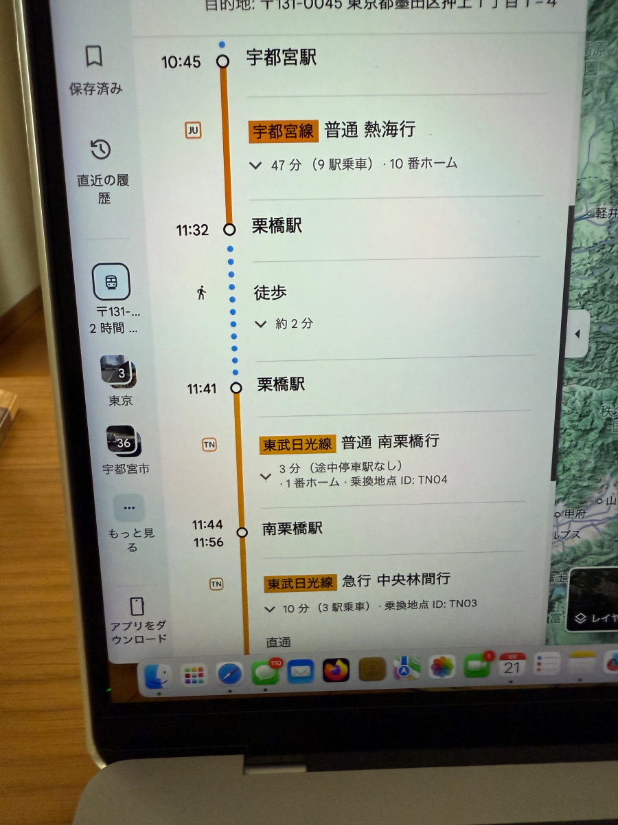 在来線の経路を探索、栗橋乗り換えになりました