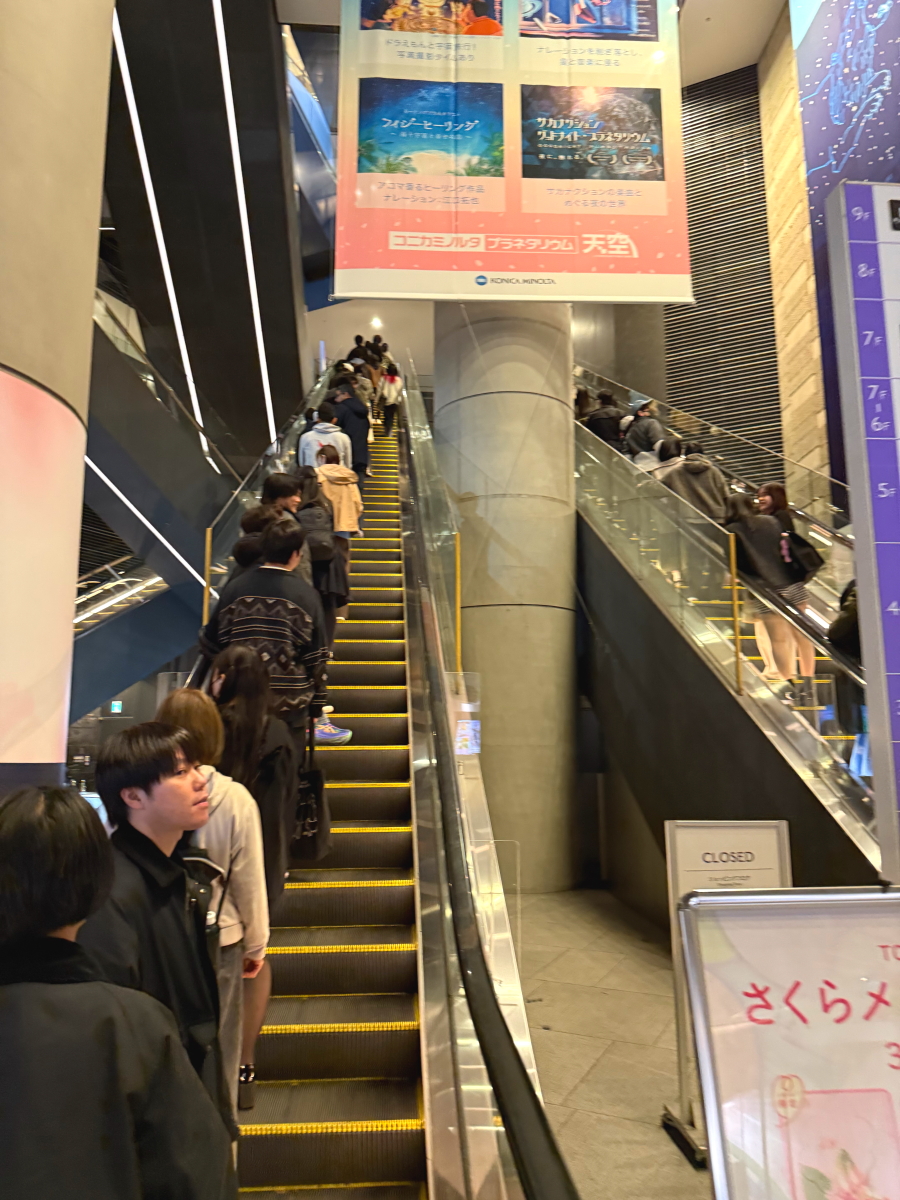 下のエレベーターも長蛇の列