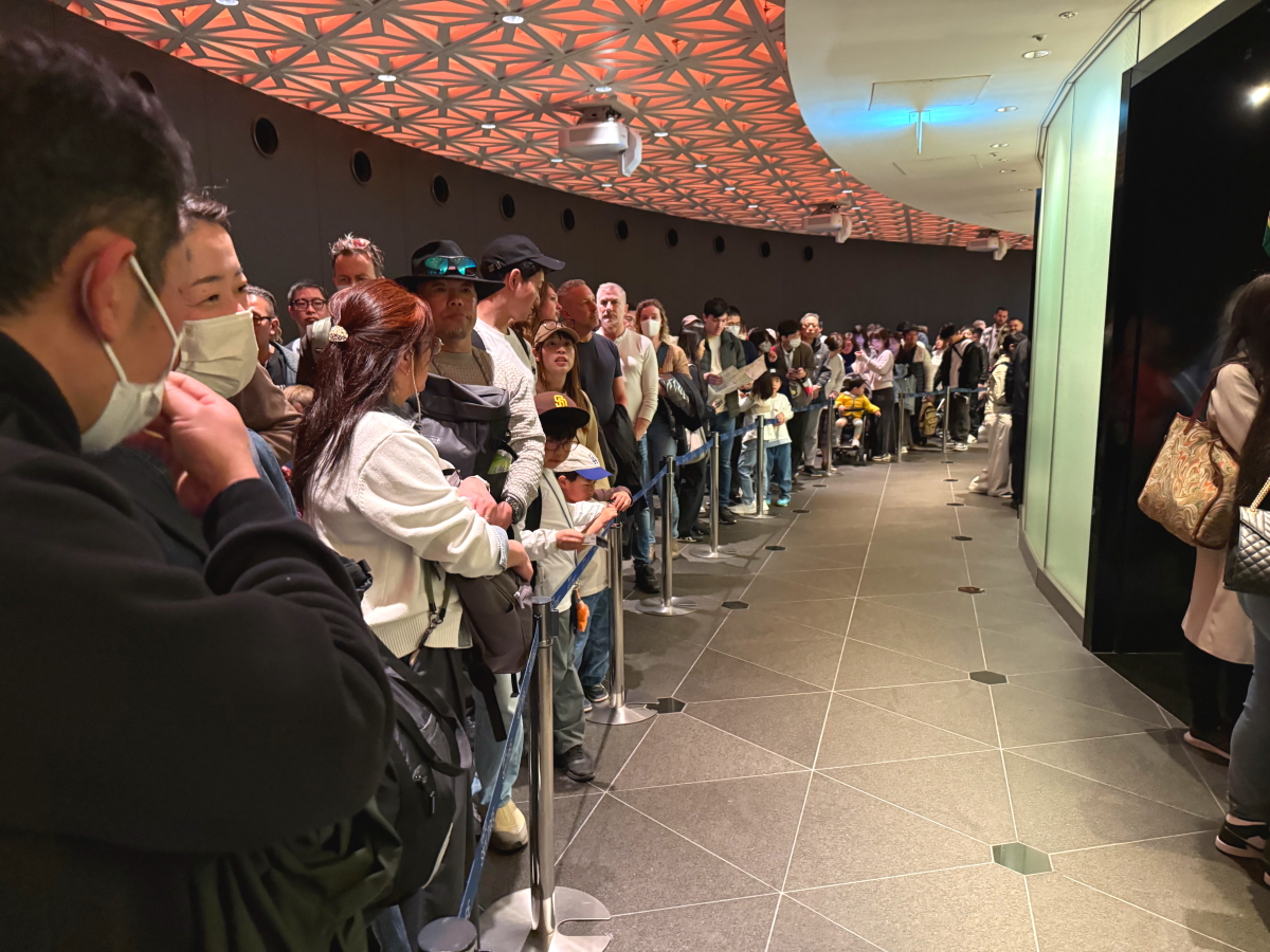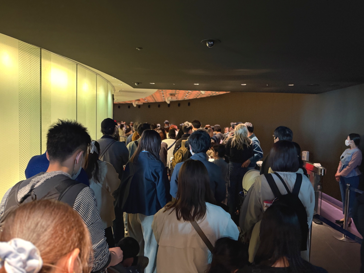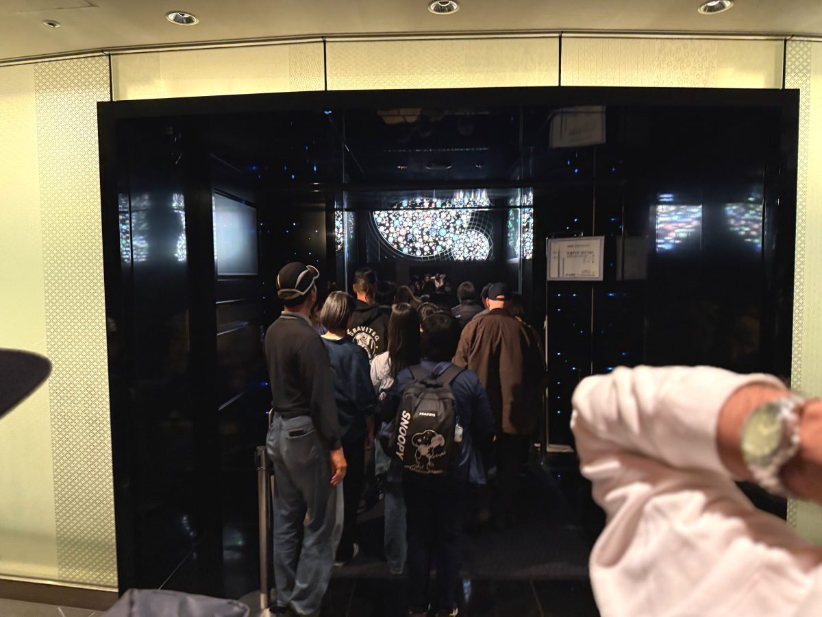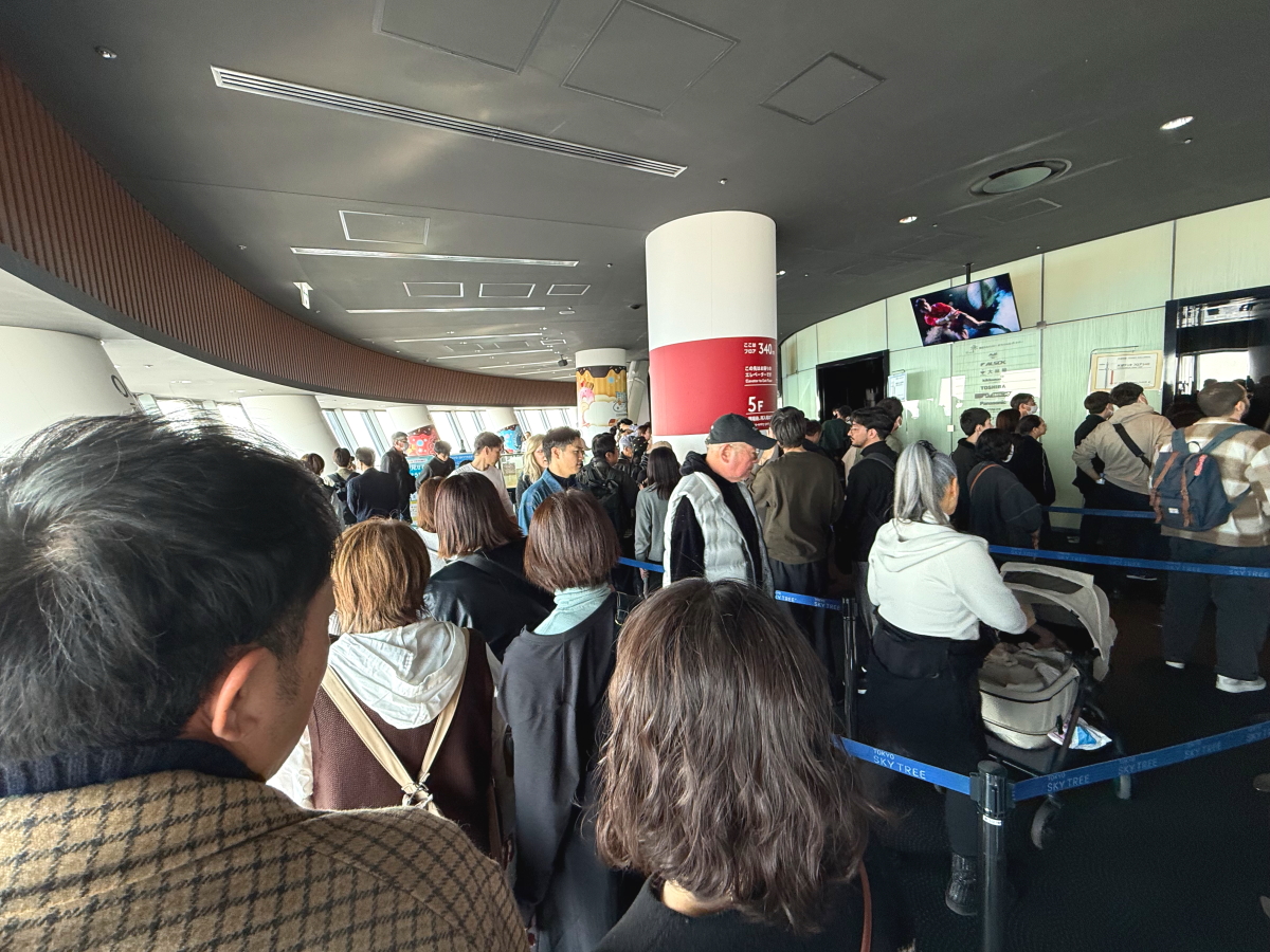 展望デッキの予約時間になったので、上りのエレベーターの列に並びます