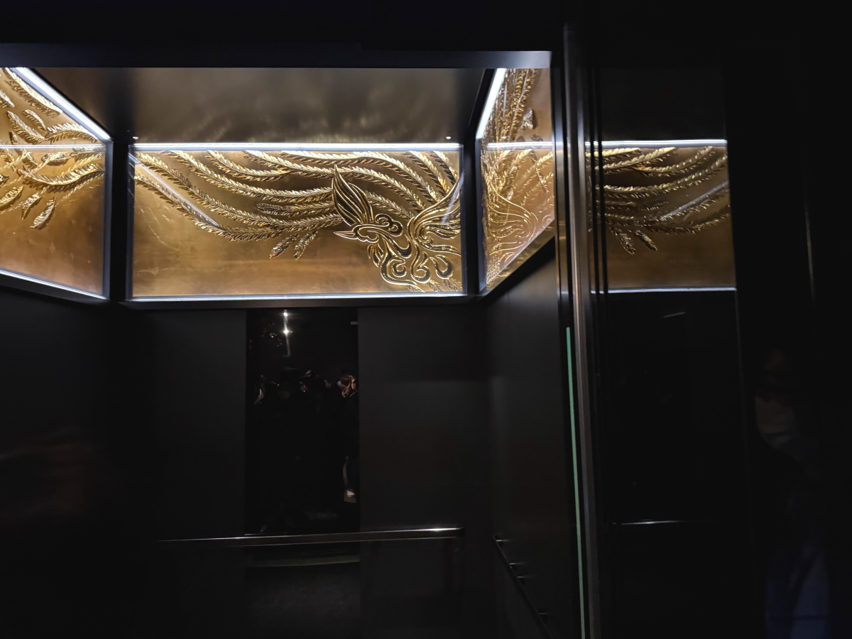 上りのエレベーターは和のイメージ