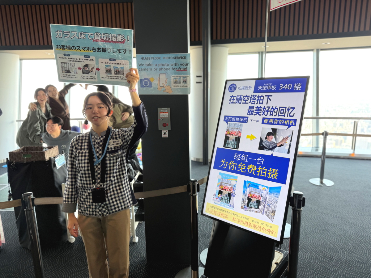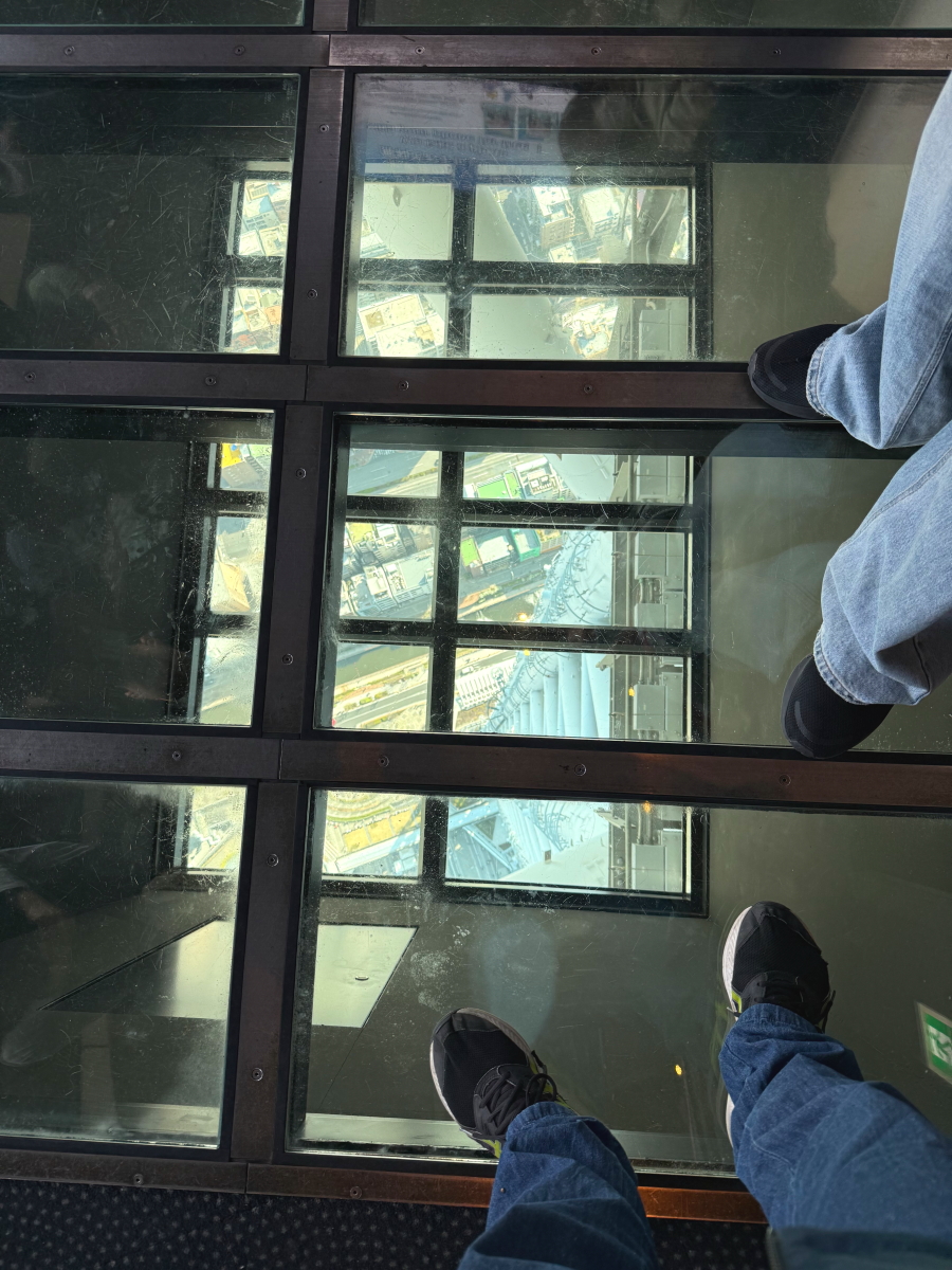 最初のフロアから2つ降りたところで、透明フロアから下が見えます
