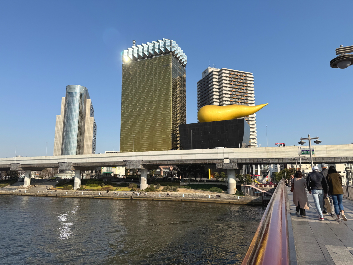 隅田川を渡って振り返るとアサヒビールのビル