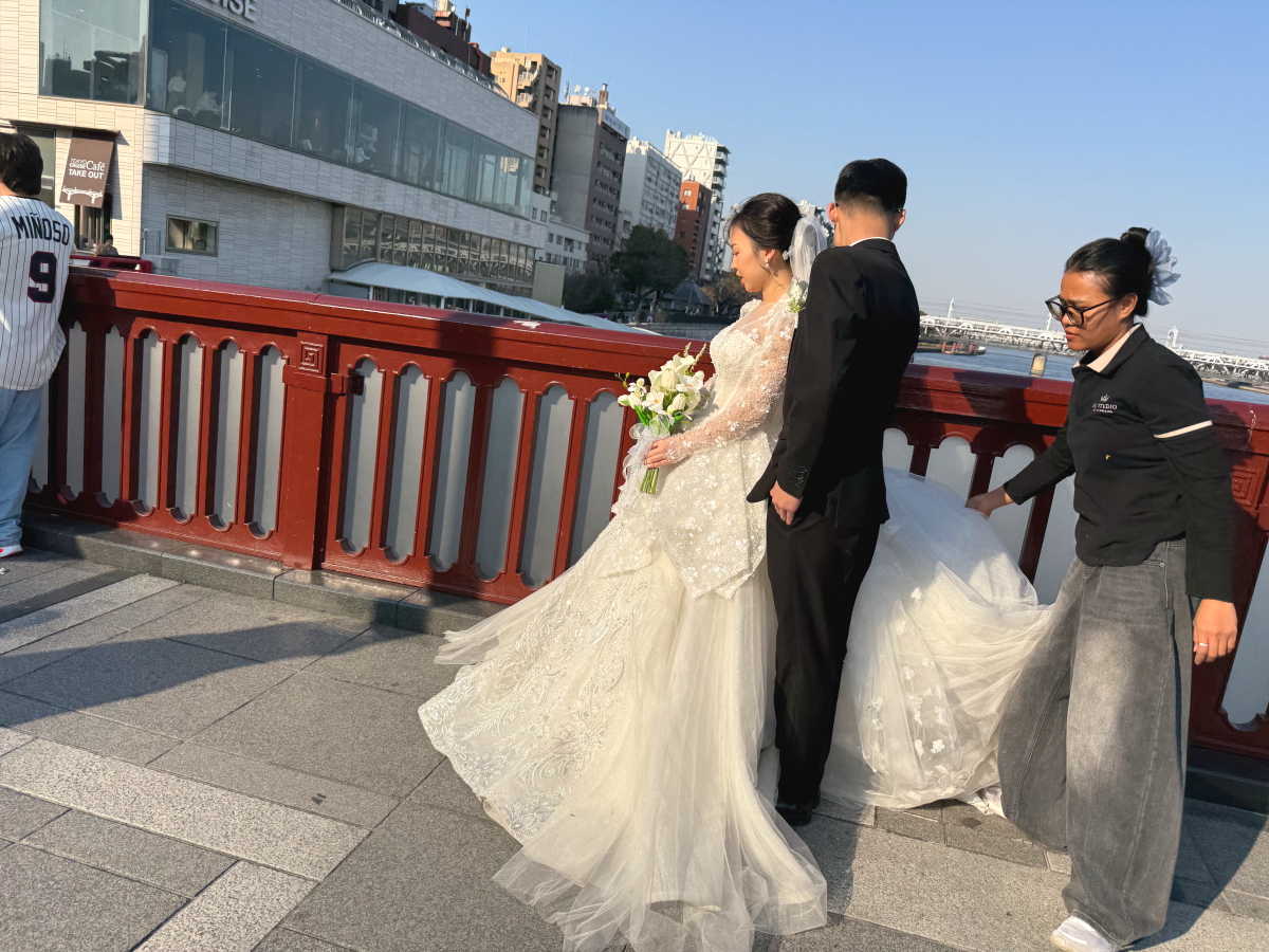 橋の上ではウエディングの撮影中でした