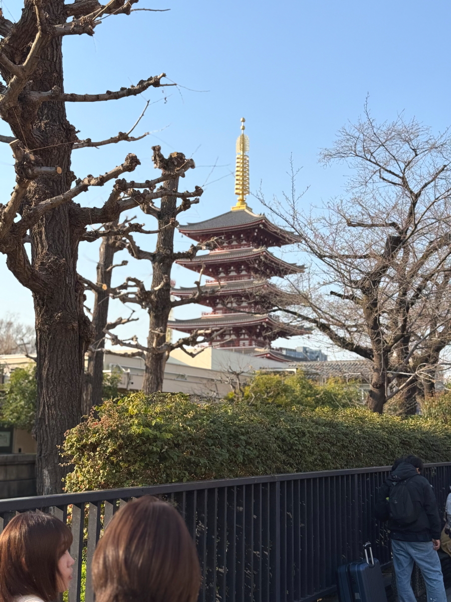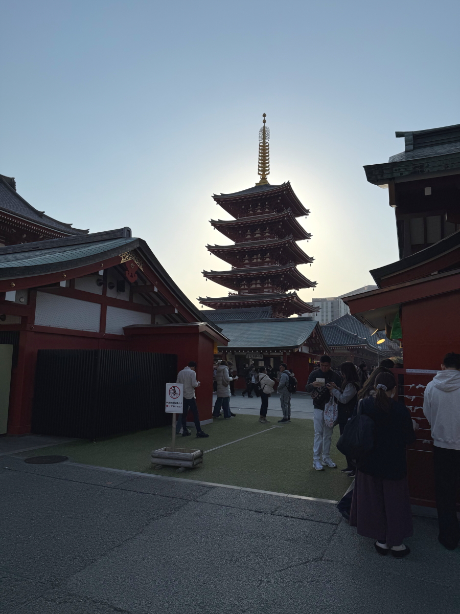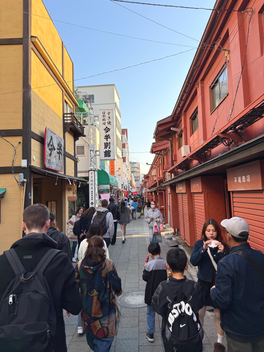 浅草に歩いて行くと後ろにスカイツリー