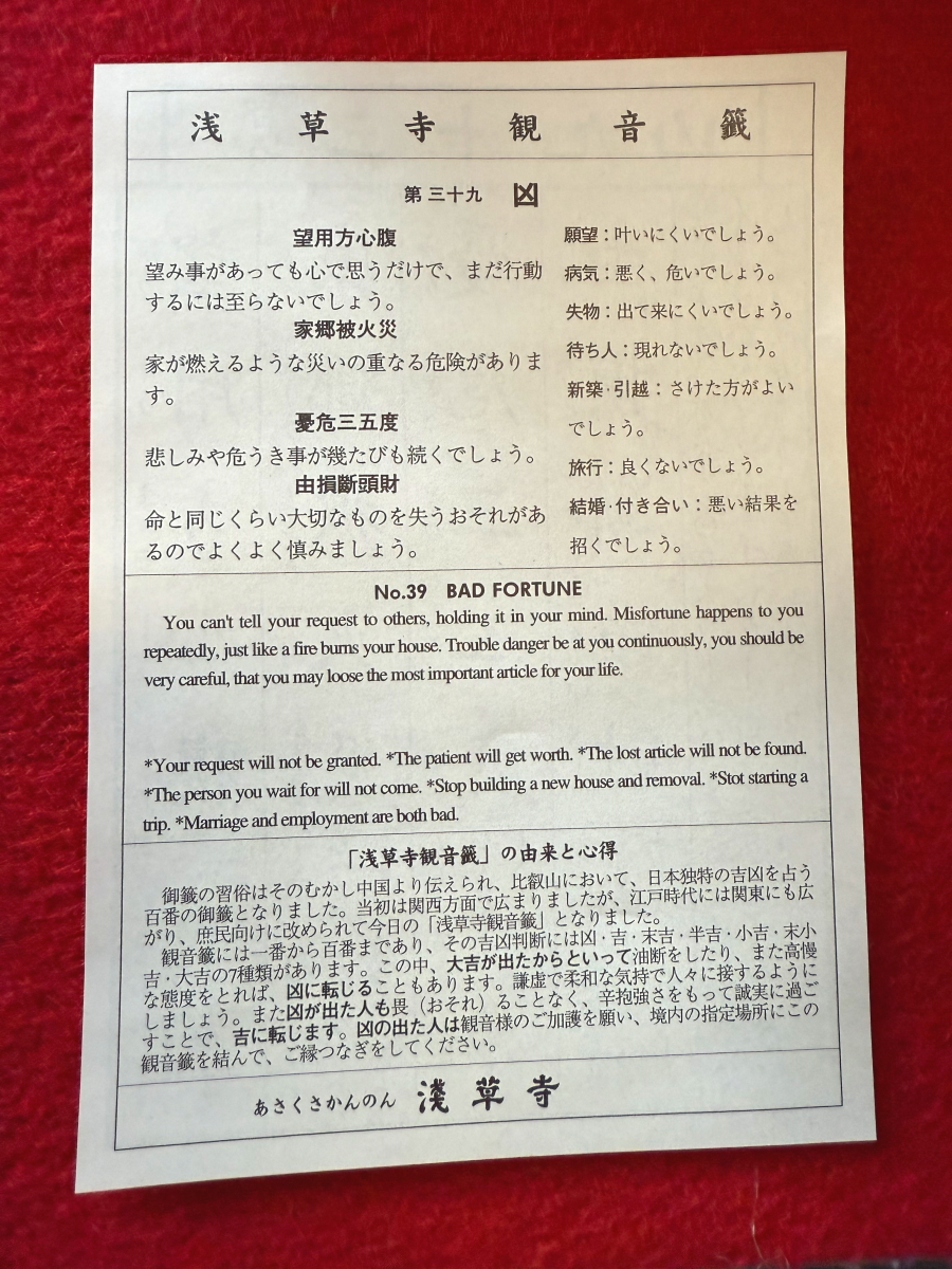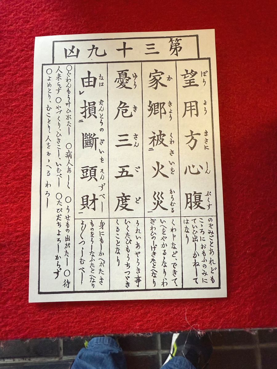 おみくじは凶・・・横の針金に結びました