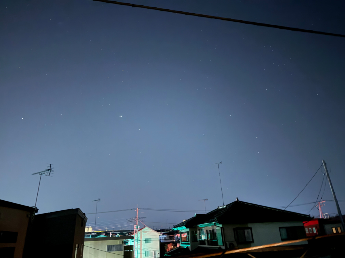 宇都宮の星空、ふたご座とぎょしゃ座が写ってるはず