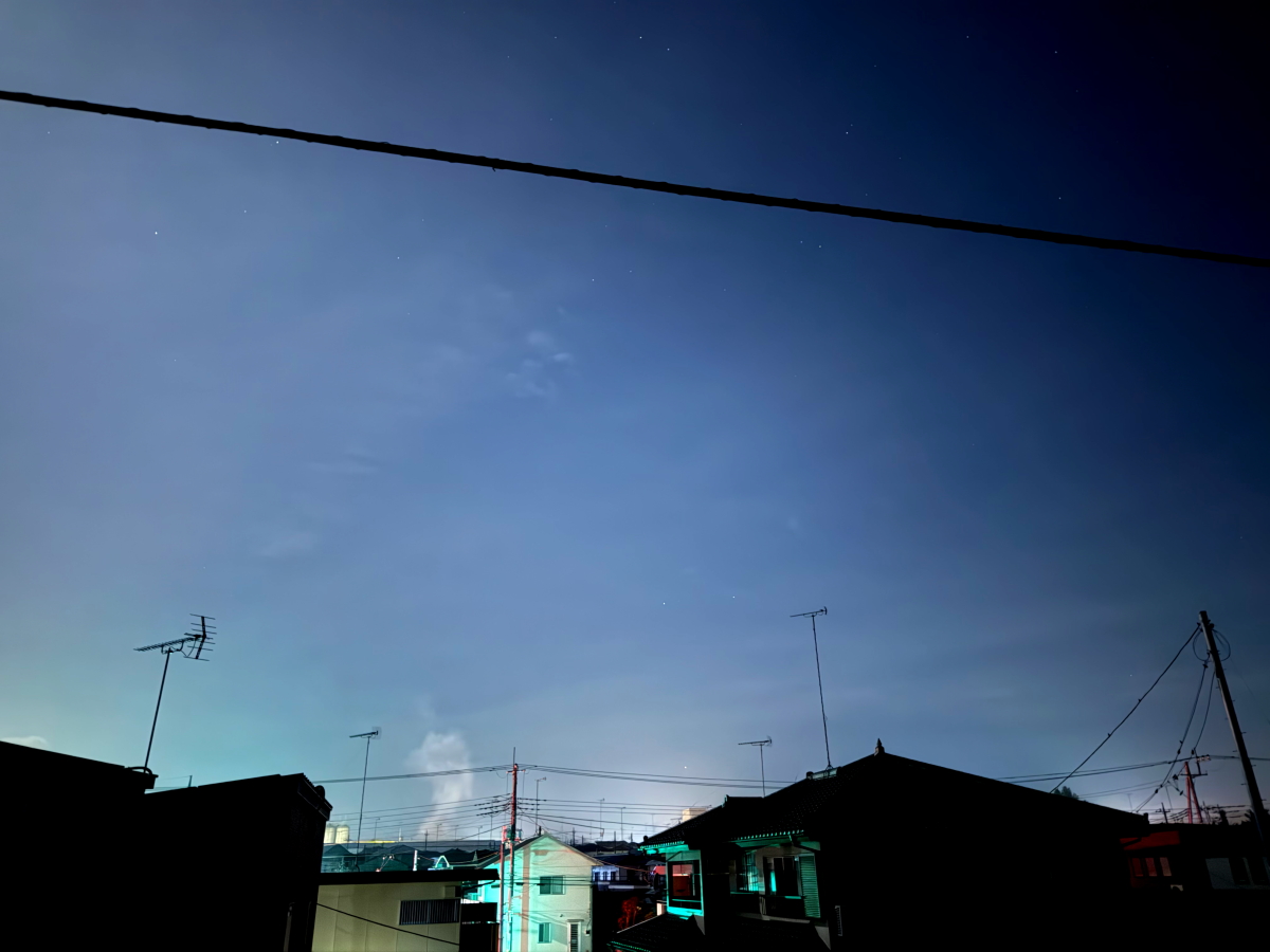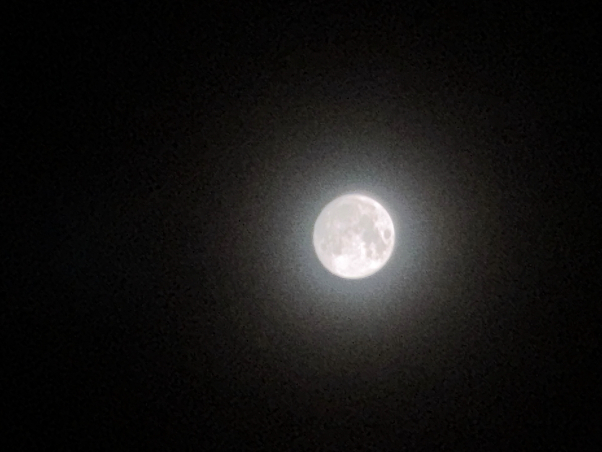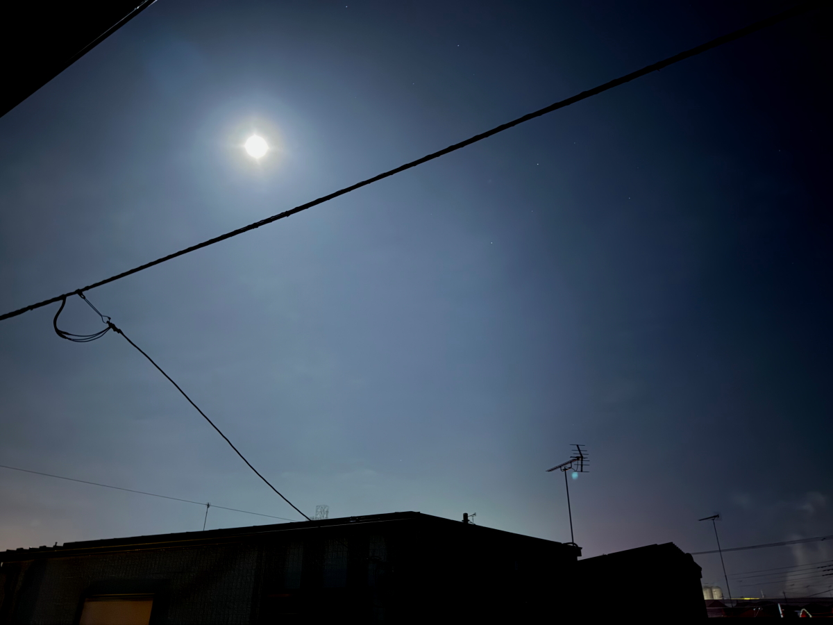 薄曇りの空にお月様が浮かんで、星はほぼ見えません