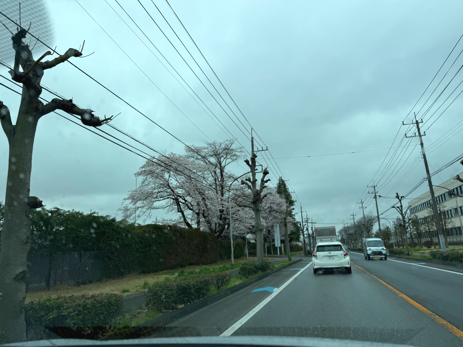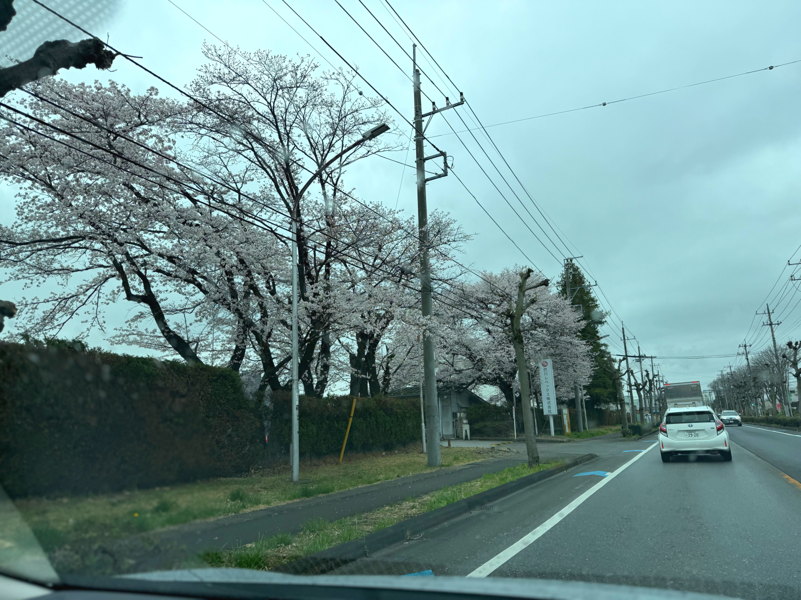 平出工業団地内の道路は桜が満開