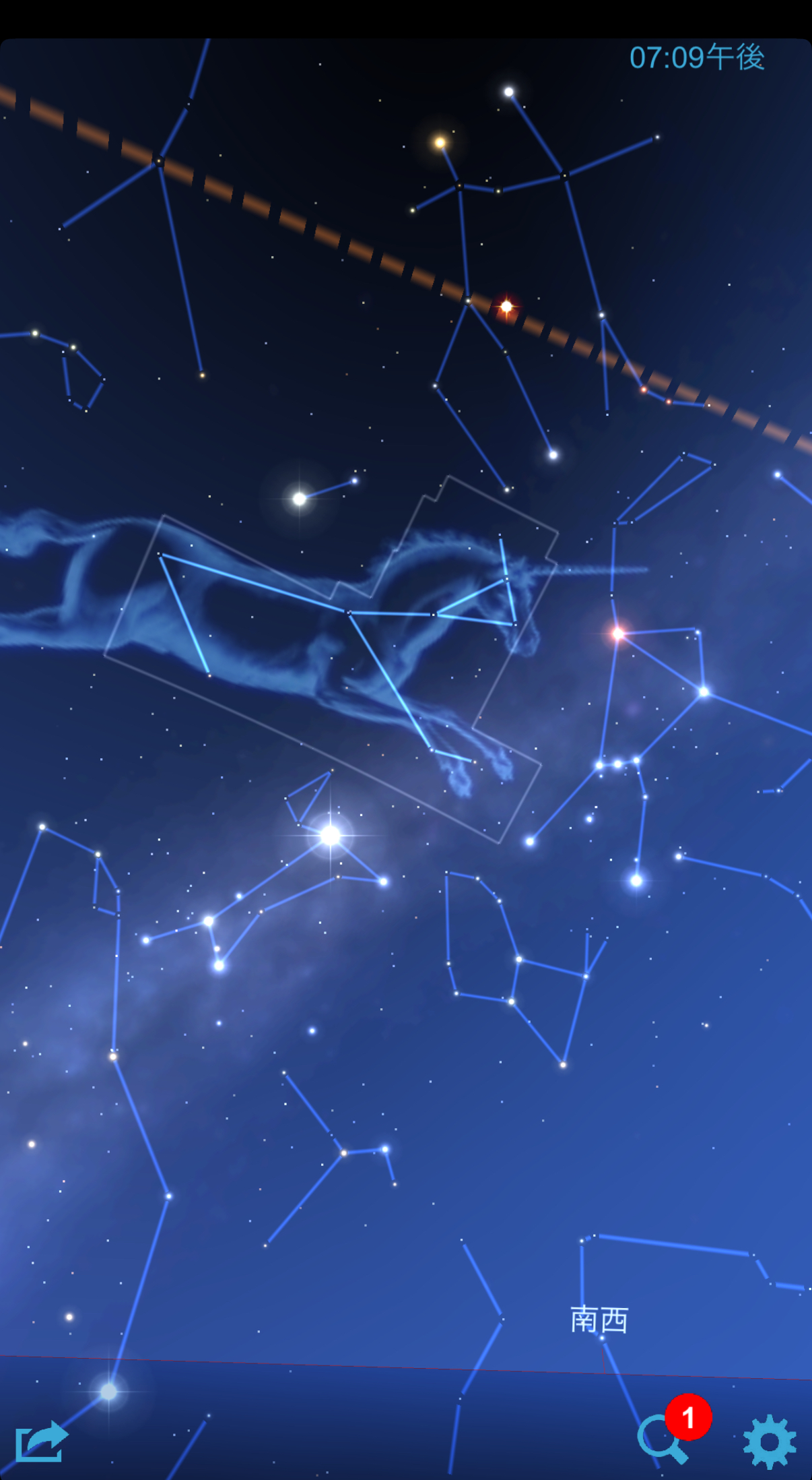星座アプリの画像で、見えているのはこの星座達